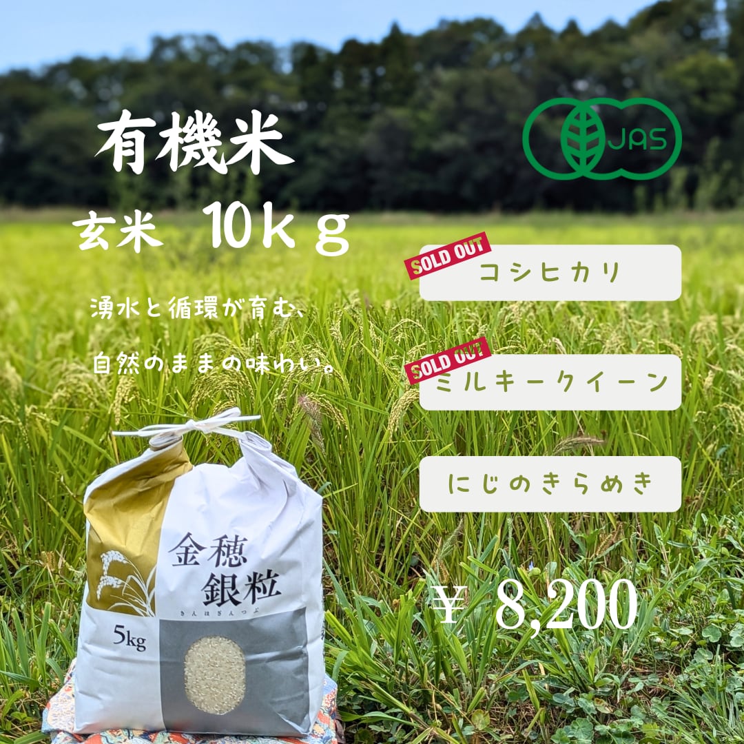 【有機米】玄米10kg(コシヒカリ/ミルキークイーン/にじのきらめき)
