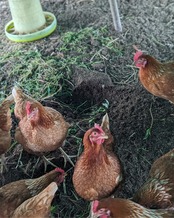 ヒヨコから育てた平飼い鶏の、
