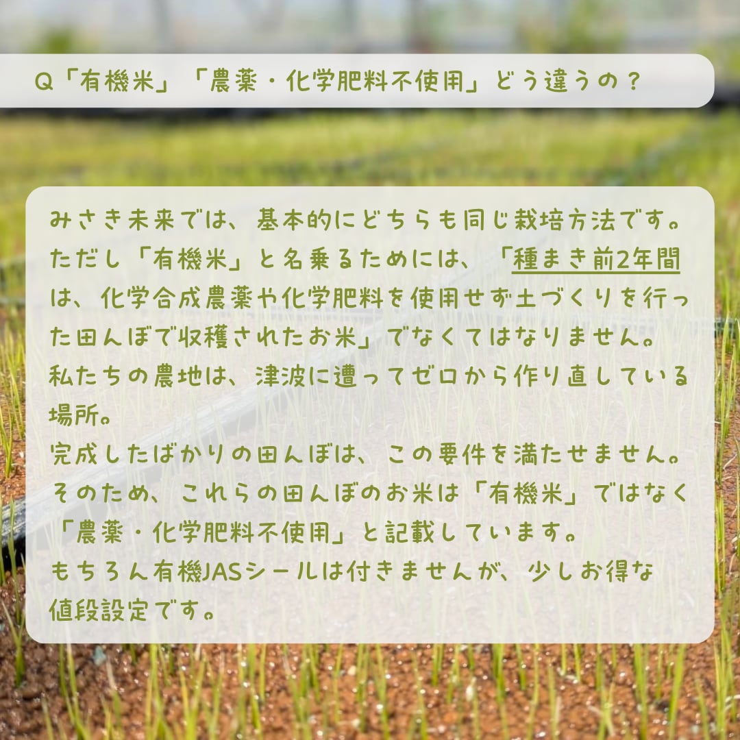 農薬・化学肥料を使用せず栽培し、有機JAS認証を受けたお米です。
