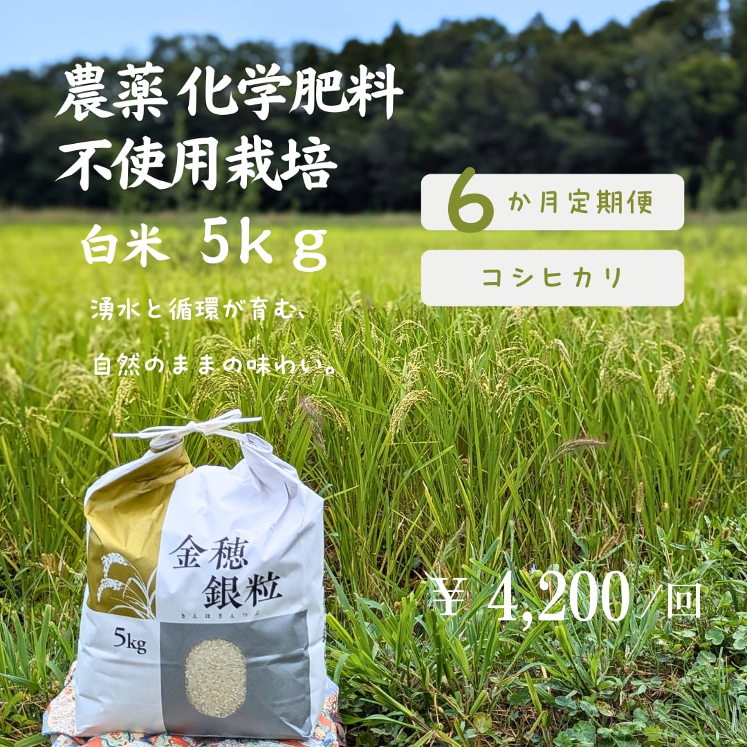 ・農薬・化学肥料不使用栽培のコシヒカリ(白米)5kg×1袋