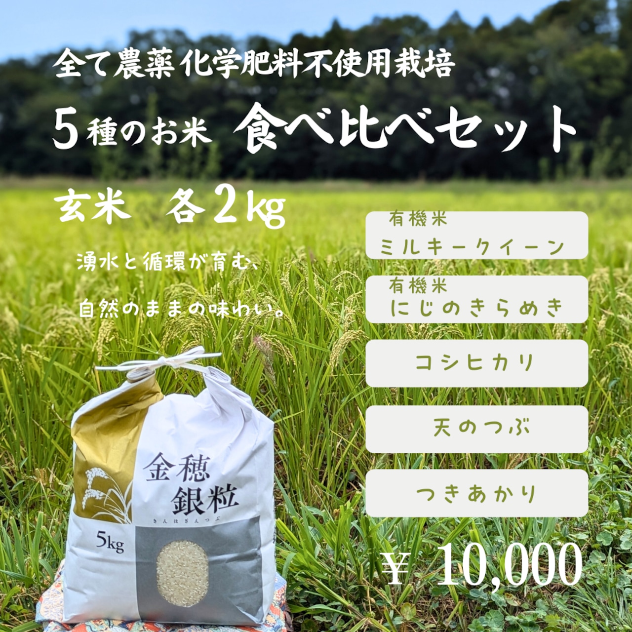 5種のお米味くらべセット10kg【精米】(ミルキークイーン/にじのきらめき/コシヒカリ/ミルキークイーン/天のつぶ/つきあかり各2kg)